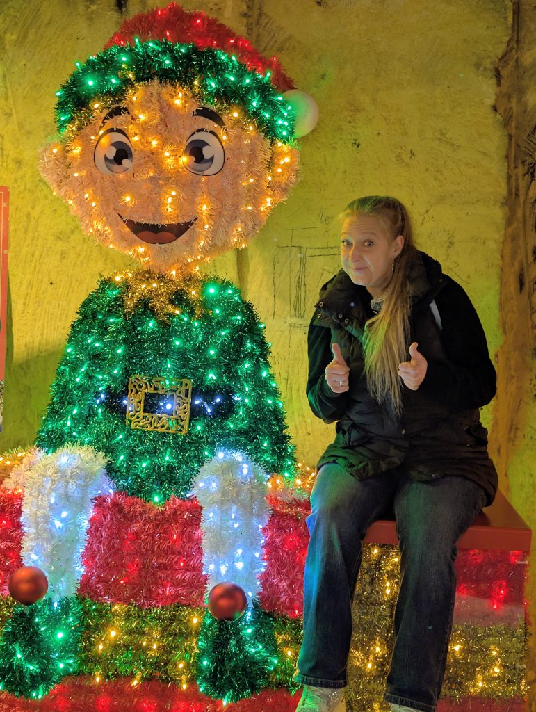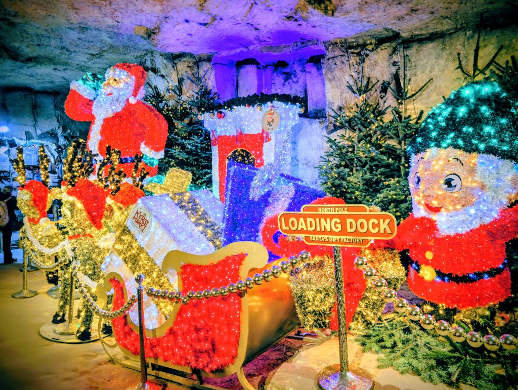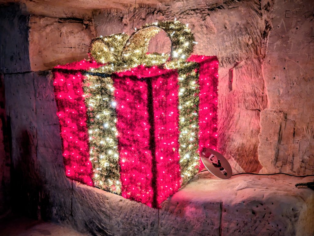 Die warmen Lichter, die Felswände und die weihnachtlichen Elemente schaffen eine Stimmung,