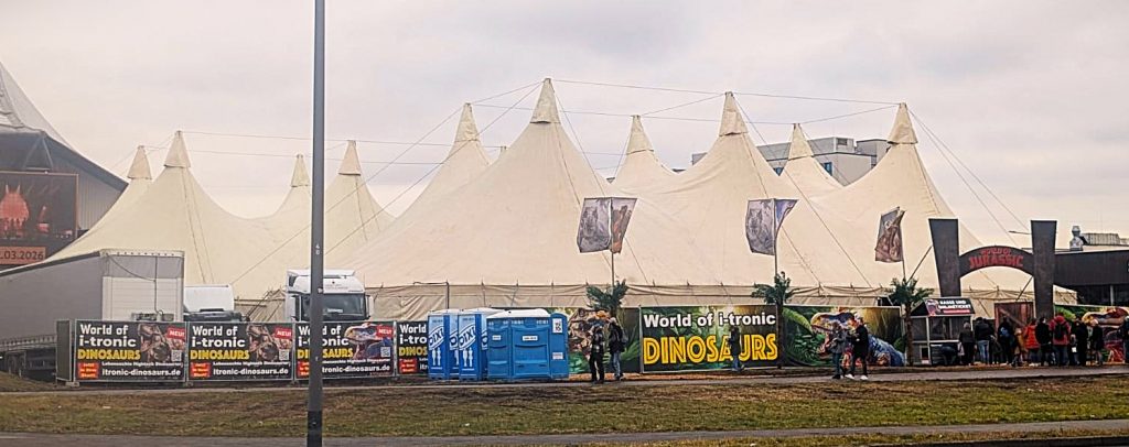 Die Ausstellung findet statt bei der Dino-Zeltanlage neben dem Metronom Theater in Oberhausen: